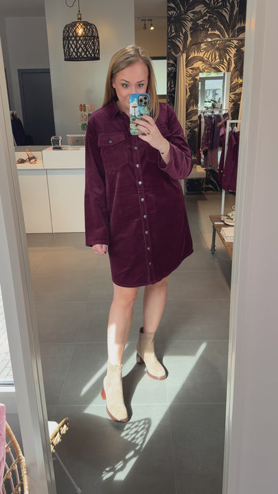 Corduroy, maar dan chic! Dit kleedje van Freequent in de rijke kleur Port Royale is een perfecte mix van stoer en vrouwelijk. De ribfluweelstof geeft het een zachte, luxueuze uitstraling, terwijl de doorknoopsluiting en borstzakjes zorgen voor een nonchalante knipoog.