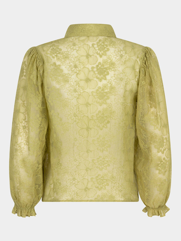 Blouse Maura van Ydence is een vrouwelijke blouse met prachtige geborduurde bloemen in semi transparante stof. De blouse heeft een licht getailleerde pasvorm, pofmouwen, een kraagje en sluit met een knoopsluiting aan de voorzijde.